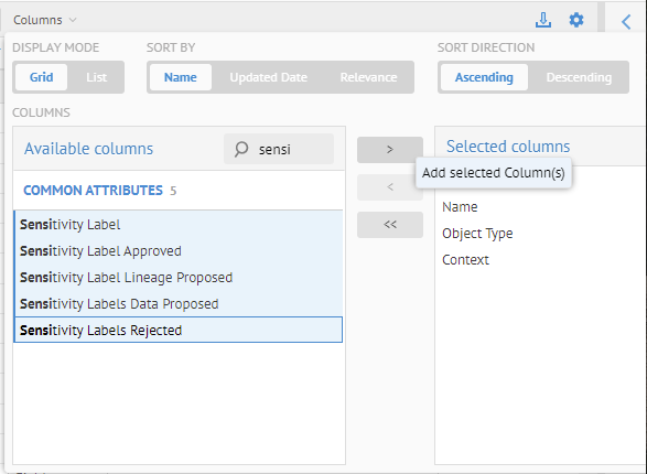 Add the following sensitivity label columns: