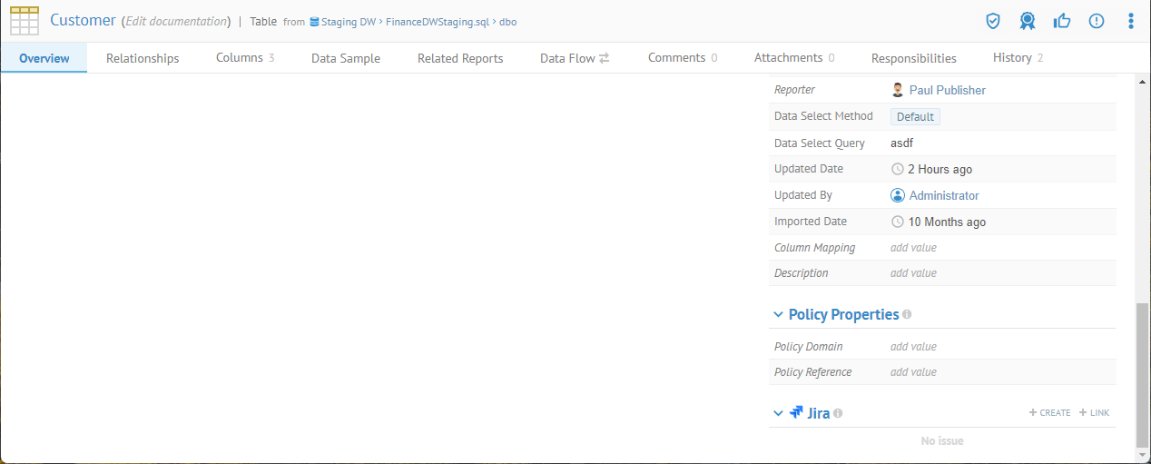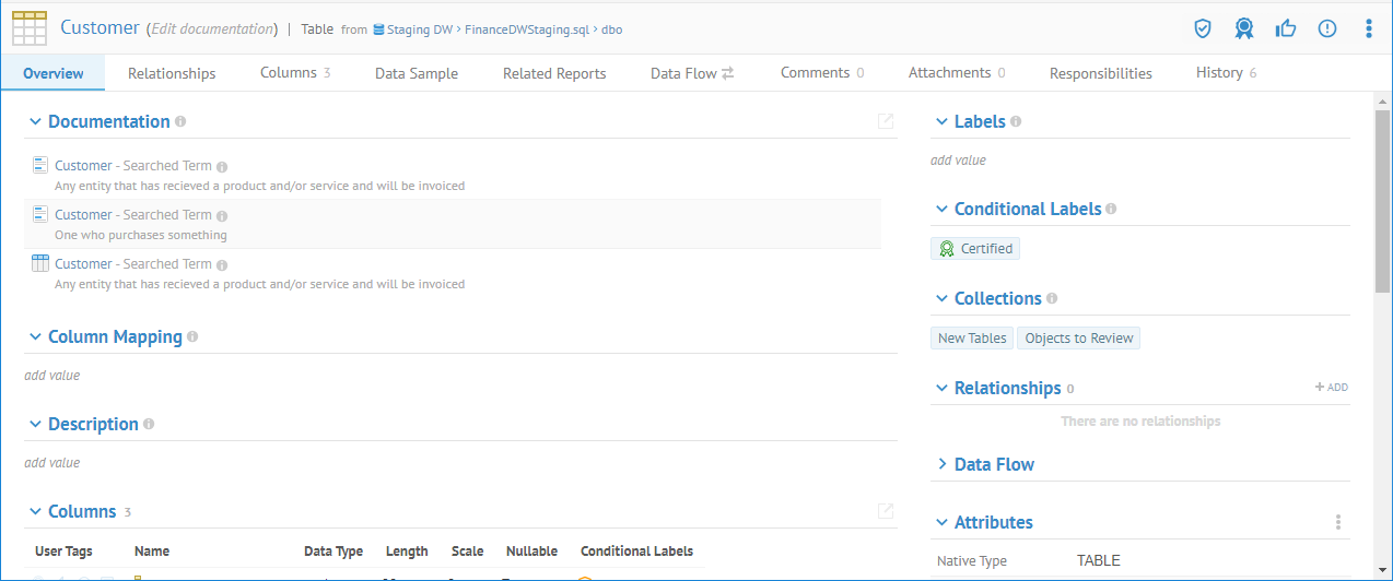 Go to the object page of the Customer table in the Staging DW model.