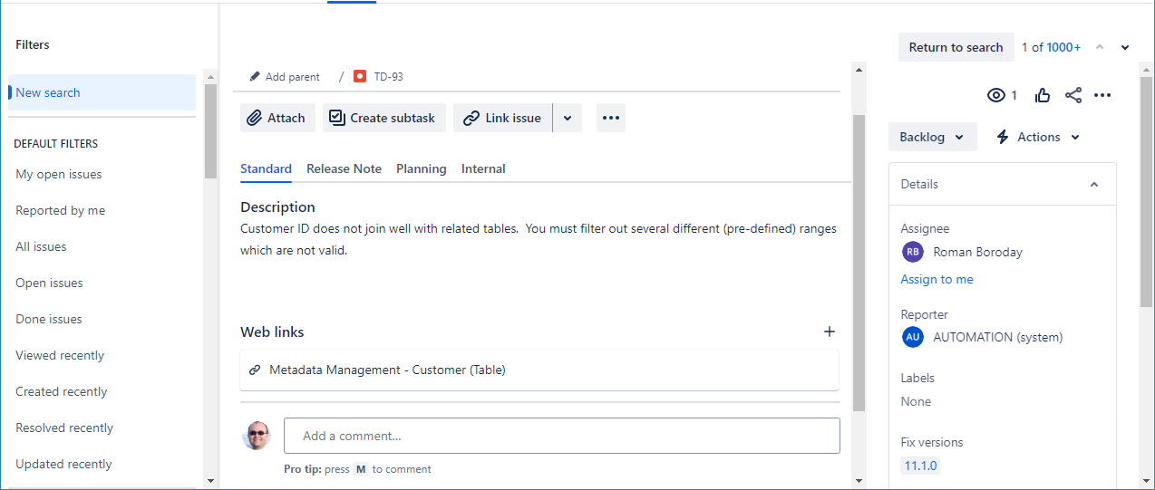 The UI also informs us that this particular assignment was made due to lineage analysis as the object downstream from this one was assigned manually.