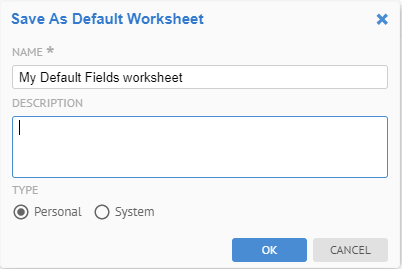 Enter the NAME, TYPE, SHARE WITH and DESCRIPTION fields as above. Click OK.