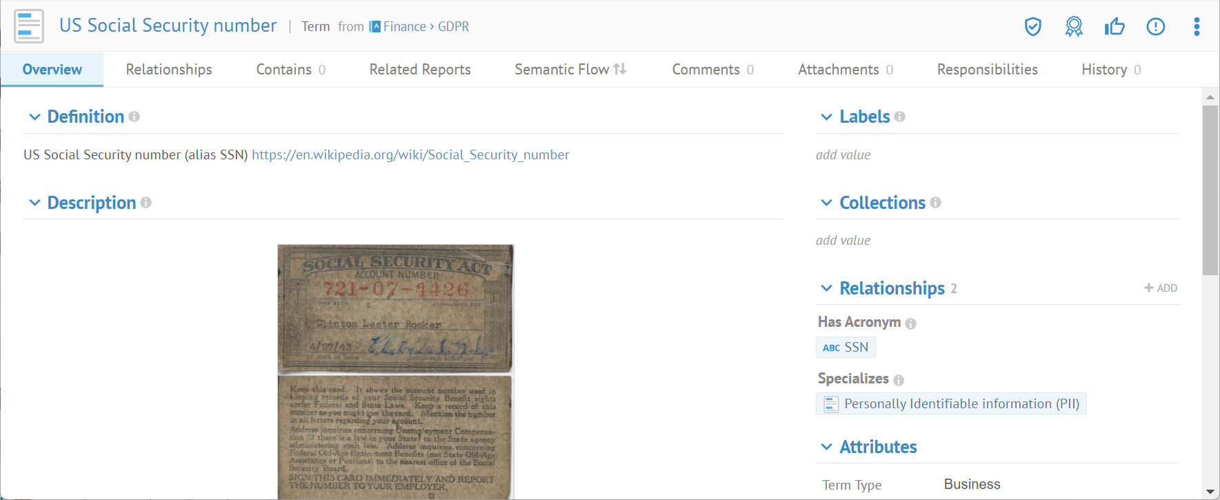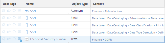 For example, a data class SSN can be associated to a sensitivity label Confidential or GDPR. In such case, any table columns or file fields detected as SSN will also automatically be set with that Confidential or GDPR sensitivity label. These may later be reviewed and approved.