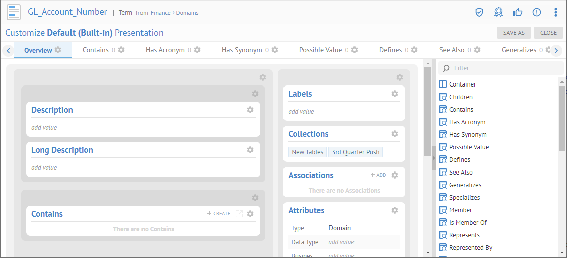 You are presented with the Overview tab. Thus, we will be customizing the Overview tab presentation for any table (object category).