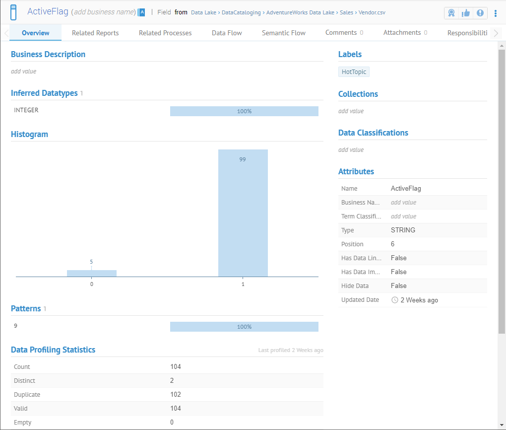 Go to WORKSHEETS > File > Fields and click ActiveFlag on the object page. Go to the Overview tab.