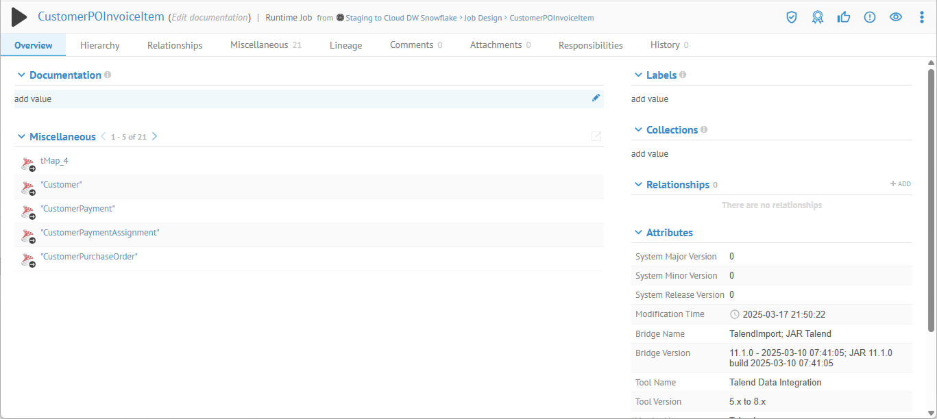 In this case, we see that there is a relationship inferred between the Customer table and the Invoice table. To see how MetaKarta is able to infer this relationship, click on the runtime job named CustomerPOInvoiceItem: