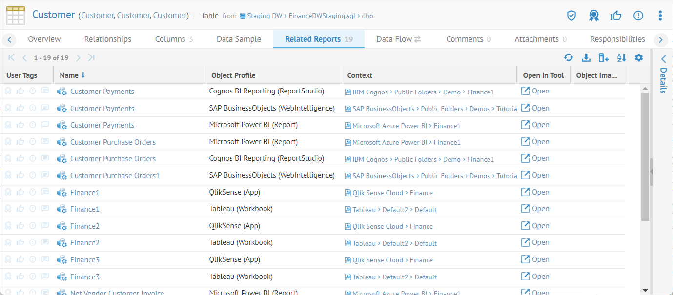 Browser Extension for Qlik Sense Now, go to Staging DB.Customer, go to the Related Reports tab and click on the Open in Tool icon next to the Qlik Sense report. When showing the report page the icon enables. Click the icon.