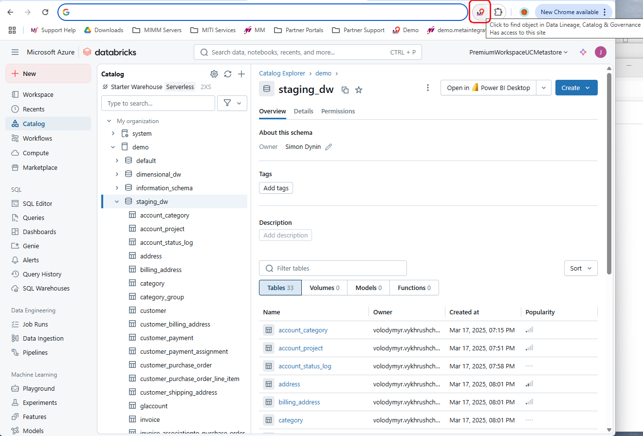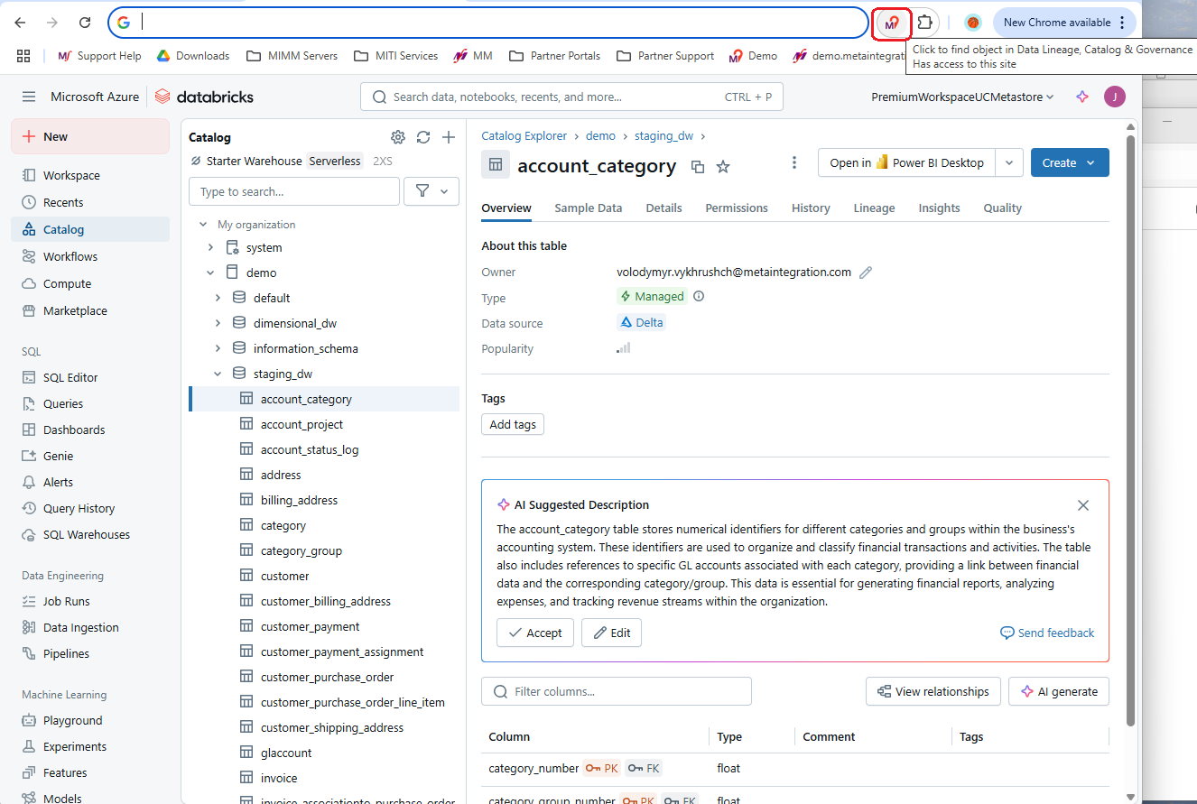 In the Cloud Databricks Architecture configuration, we can see Databricks based models, e.g., the Bronze Staging DW Databricks model containing a schema named staging_dw: