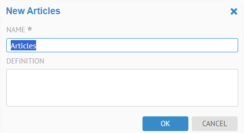 Enter a Name and Description for the instantiated custom articles model and click OK.