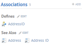 Now, to pick one of these term definitions and directly create an Is Defined By relationships between the actual term with the definition and this imported object, simply click Edit Documentation and you have the same presentation as with the Overview tab and can ADD with the preferred definition (the first one in the list in this case).