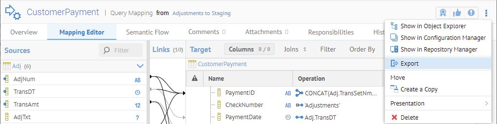Sign in as Administrator and go to the object page for the CustomerPayment query mapping in the Adjustments to Staging data mapping.