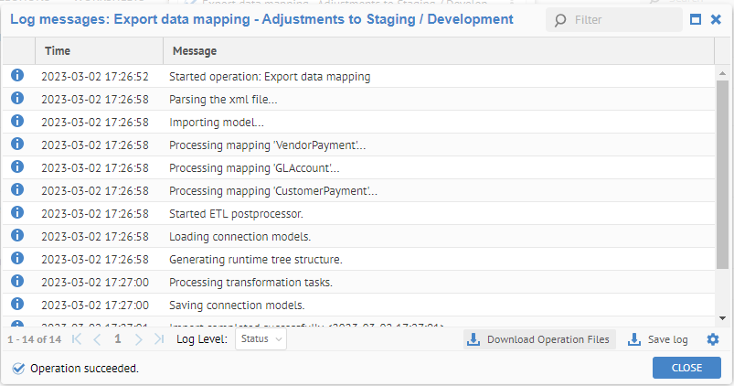 Note it is completed. You may review the log. Then, see the mappings that are imported: