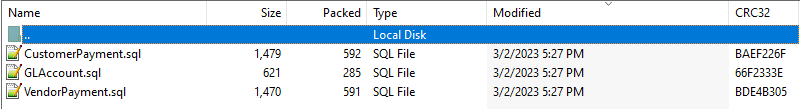 The result contains three files, one for each query and/or replication mapping in the data mapping.