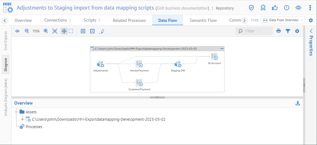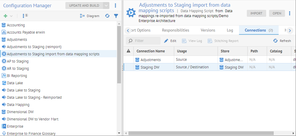 The data mapping scripts can then be imported as independent DI models or may be imported back into a data mapping, where one may continue to benefit from the UI data mapper UI. The resulting data flow linage would be the same in both cases.