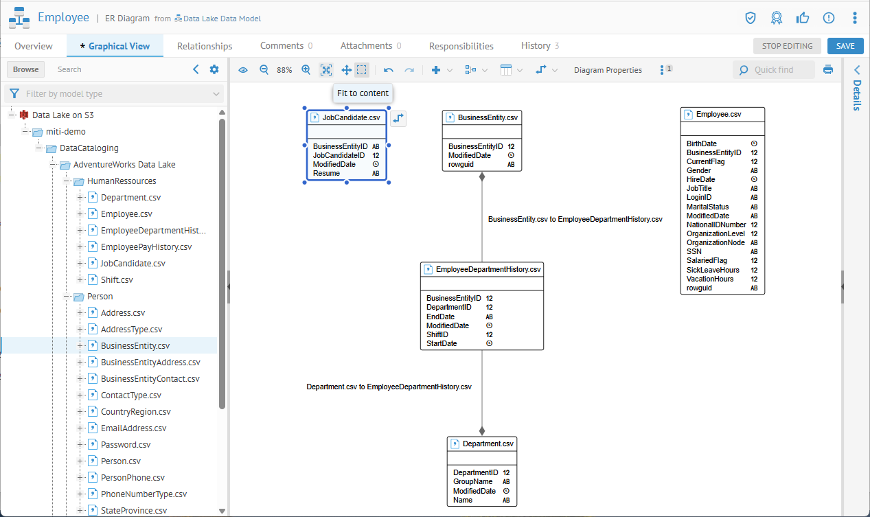 Drag JobCandidate.csv up to the upper left and click Fit to content to resize to fit.