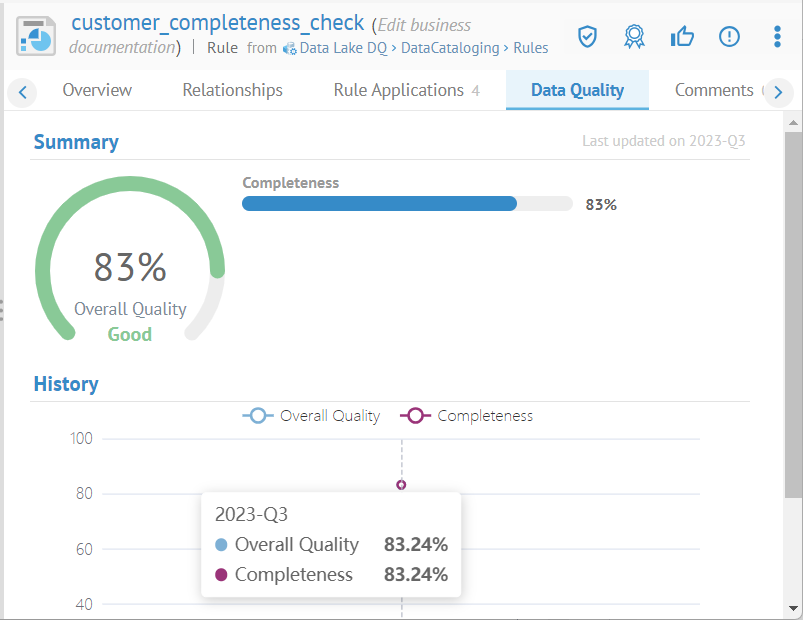 The result is a Data Quality type model and contains data quality information related to a specific data store (e.g., database).