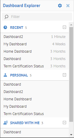 All the dashboards you have recently opened are here.