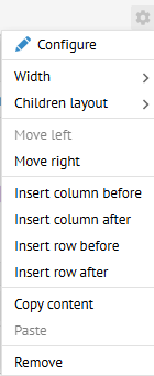 Populate cells: Drag any widget from the right panel into the left portion of the dashboard and then click CONFIGURE.