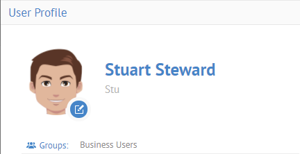 The user account is contained inside parentheses and the Full Name is displayed directly below the avatar image. Groups that a specific user belongs to are displayed below the user account.