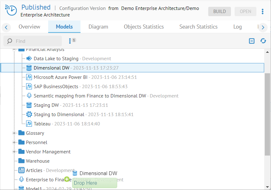 In the Repository panel, expand the tree until you see the Demo Enterprise Architecture configuration.