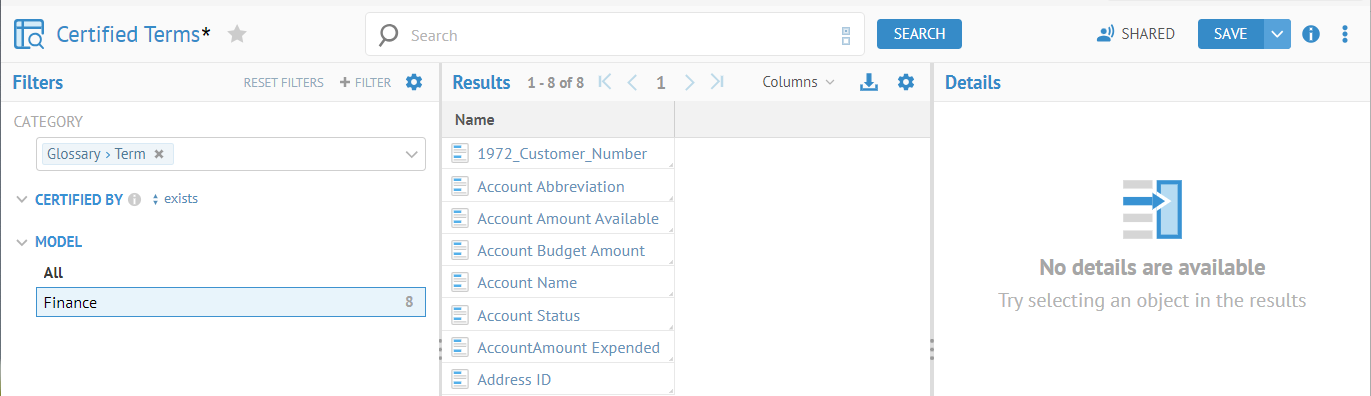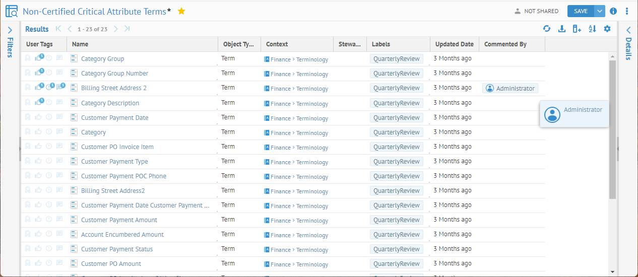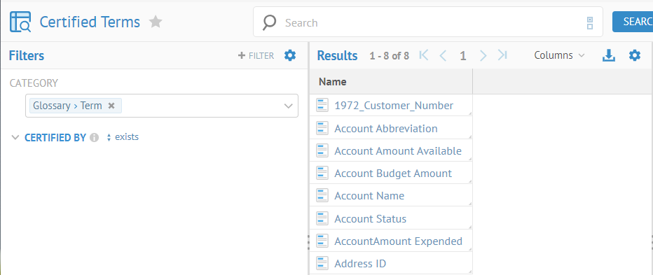 Click WORKSHEETS > FAVORITES > Certified Terms.