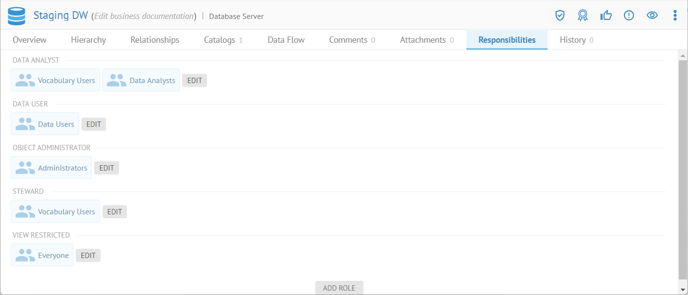 You may edit the object role responsibility assignments for multiple items in a worksheet. To do so, select multiple items and right-click one and select Edit Responsibilities.