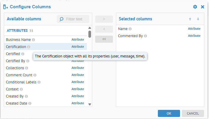 Filtering is available on a number of properties of an object, includingg most all properties which may be included as columns in a worksheet. Filters of particular note are detailed individually.