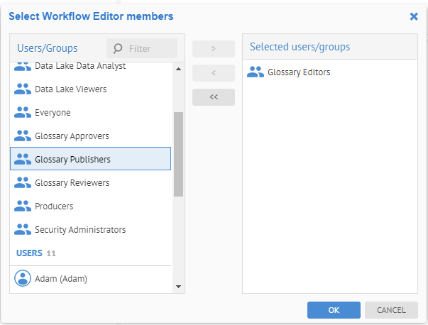 Select the Glossary Editors group.