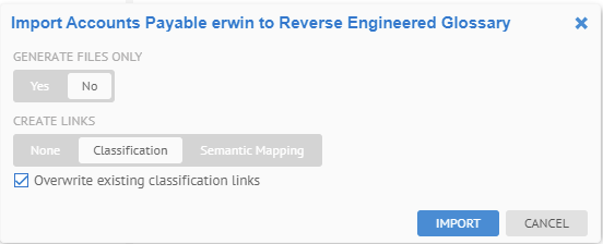 Click NO so that the glossary is updated. Click (term) Classification and check the Overwrite existing classification links box.