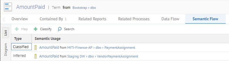 Finally, right-click on AmountPaid and select Open and go to the Lineage tab and see that the new term is classified to the object in the dbo schema of the database.