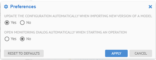 In user preferences you may use the UPDATE THE CONFIGURATION AUTOMATICALLY WHEN IMPORTING NEW VERSION OF A MODEL checkbox. This option is checked by default. It only applies to the specified user and is a UI option for manual imports. However, if checked, after a manual import then MetaKarta performs an Update/Build the current configuration version. If the model is not in the current configuration version, it will be added.