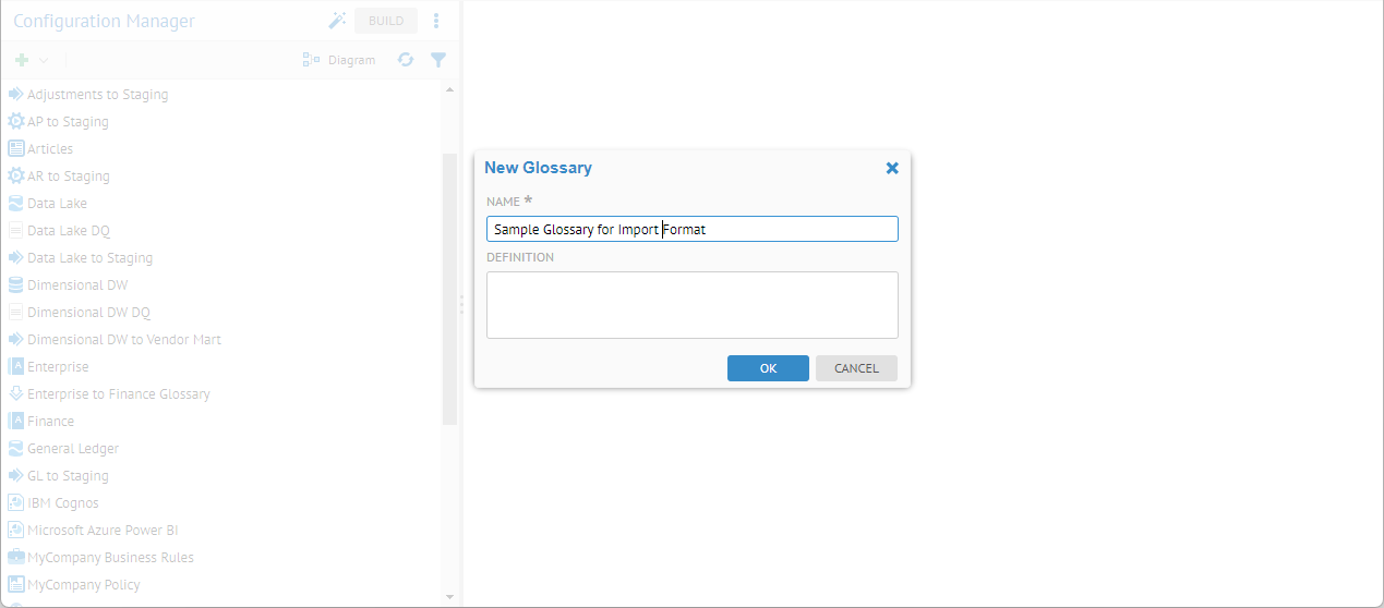 In this example we will bulk load a hierarchy of subject area specific glossaries from a fictitious third party tool. This could be a data catalog, data governance environment, data lake with data documentation or governance information, etc.