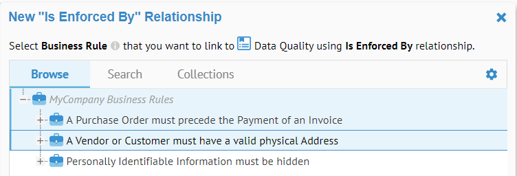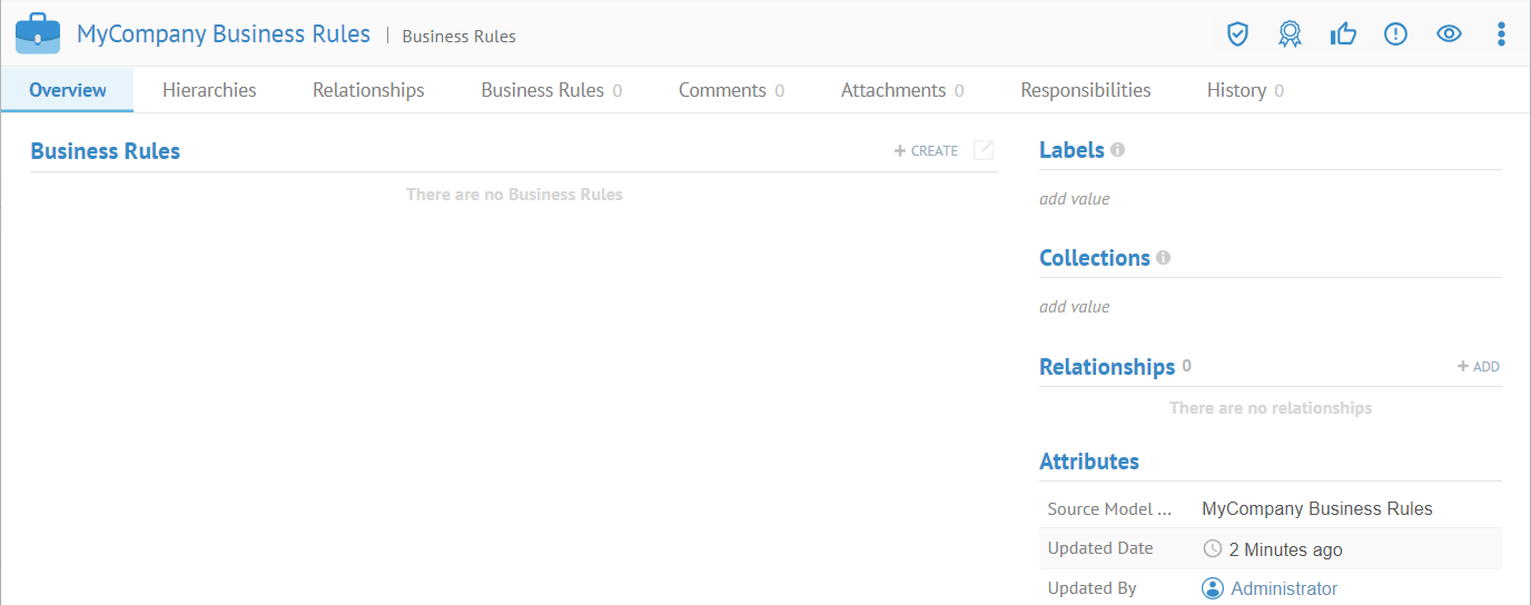 Let's make some of these connections with the two instantiated models we have (MyCompany Policies and MyCompany Business Rules).