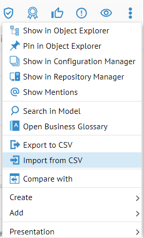 On the object page of MyCompany Business Rules, click More Actions and select Import from CSV.