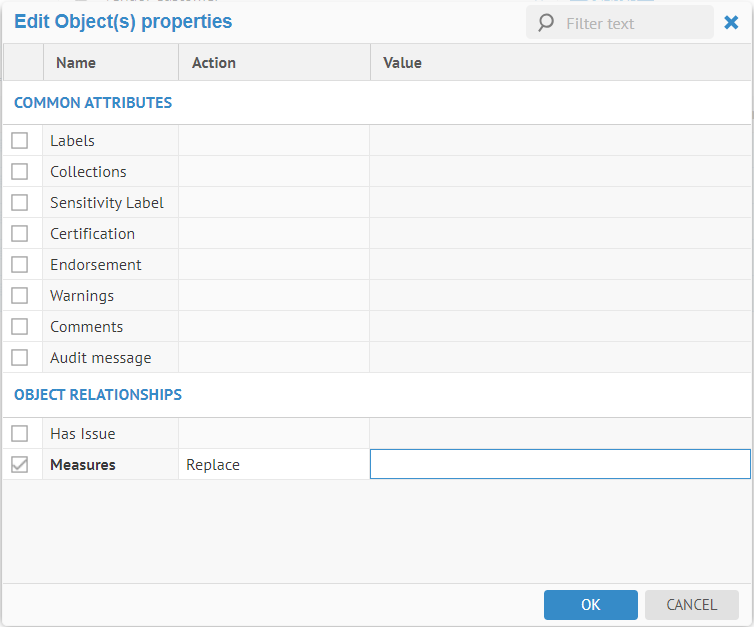 Go to WORKSHEETS > Business Rules > Business Rule to produce a worksheet and click on Columns to add the reference to Is Measured By.