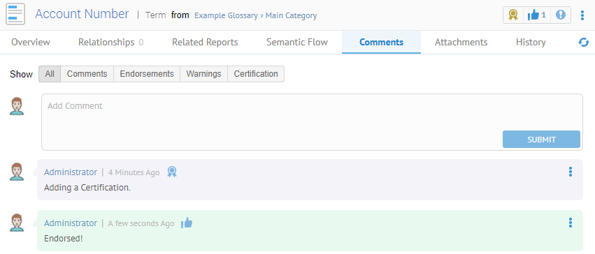 You may certify, Endorse or provide warnings on objects and relationships among them. For objects you may do so on that element's object page.