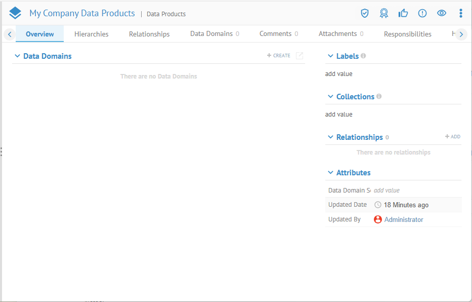Once you have created a data products model, you may add a hierarchy of data domains to it.