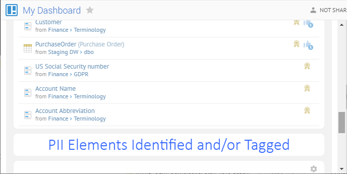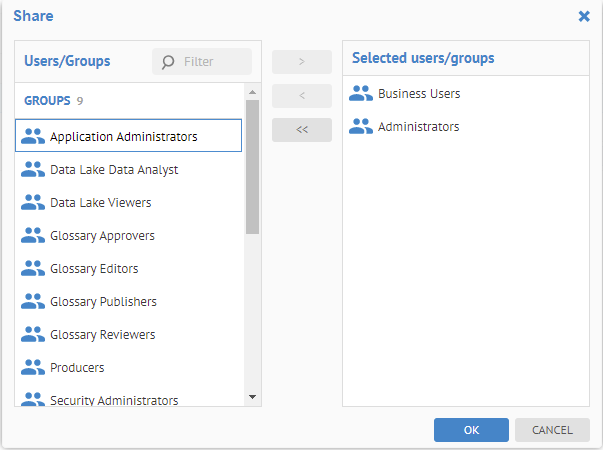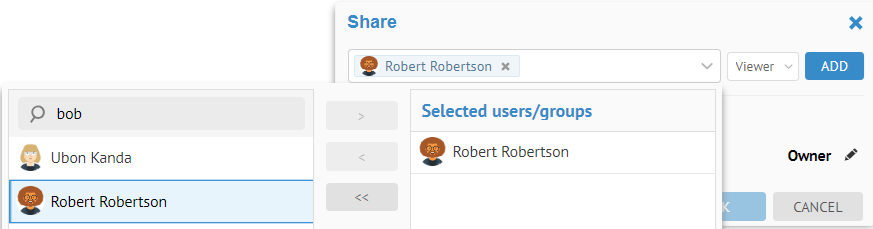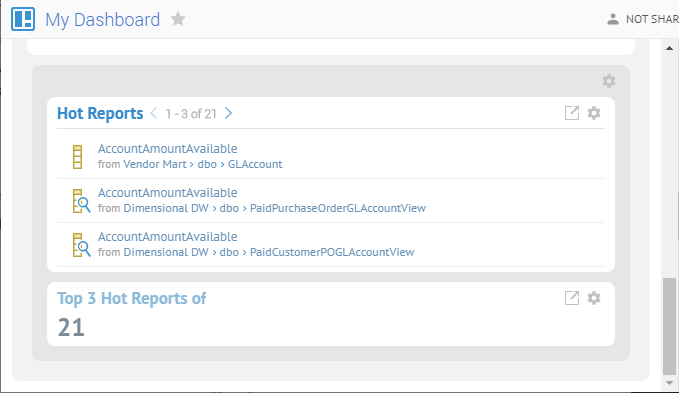 In addition, a dashboard may be shared, with specific users and/or groups. One may share the dashboard as