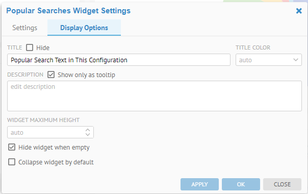 Click on the Widget Defaults tab to set the defaults for widgets: