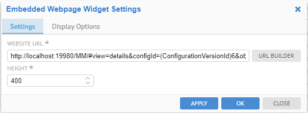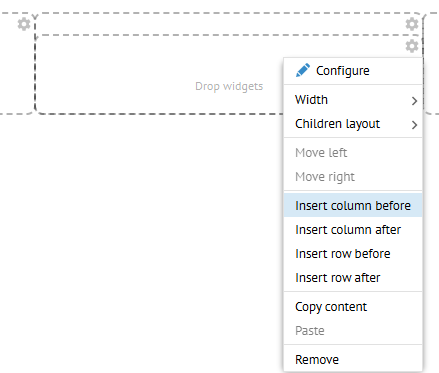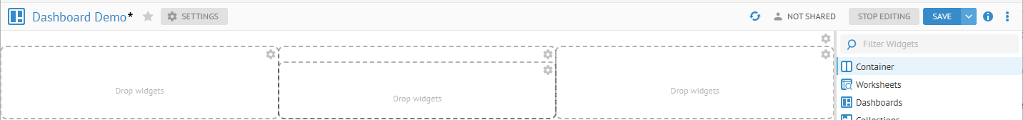 Populate cells: Drag any widget from the right panel into the left portion of the dashboard and then click CONFIGURE.