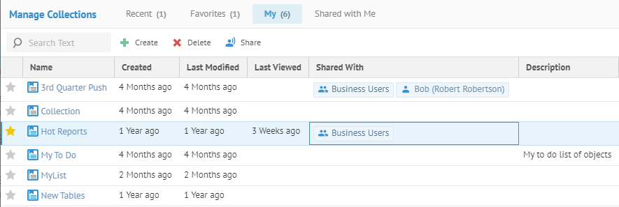 The owner (creator) of a collection may share that collection with users and/or groups.