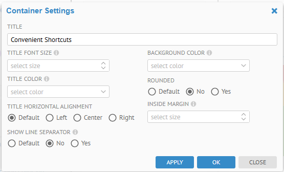 You may select Edit Title when customizing a container. Please places text as a title where you full control of the font, font size, color, alignment, and a line separator: