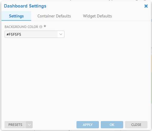 - Pick one of the PRESETS to define Settings, Container Defaults and Widget Defaults