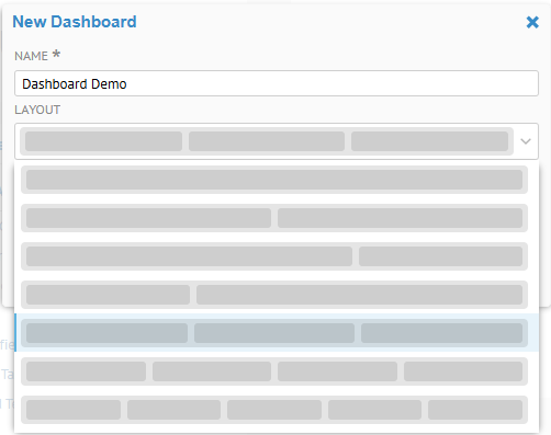 Log in as Administrator. Go to DASHBOARDS > Manage and click Create. Enter "My Dashboard" in the Name text field. Choose the three-column Layout.