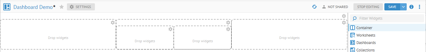 In order to place more horizontal structure into a cell in a dashboard, you may drag a container into any location a widget can be placed.