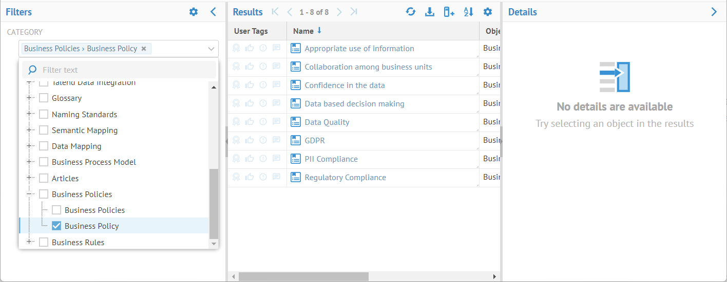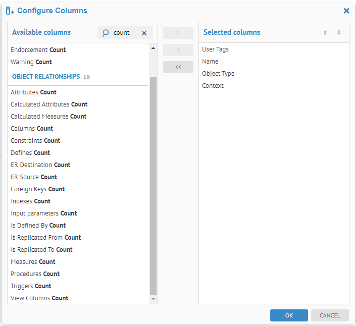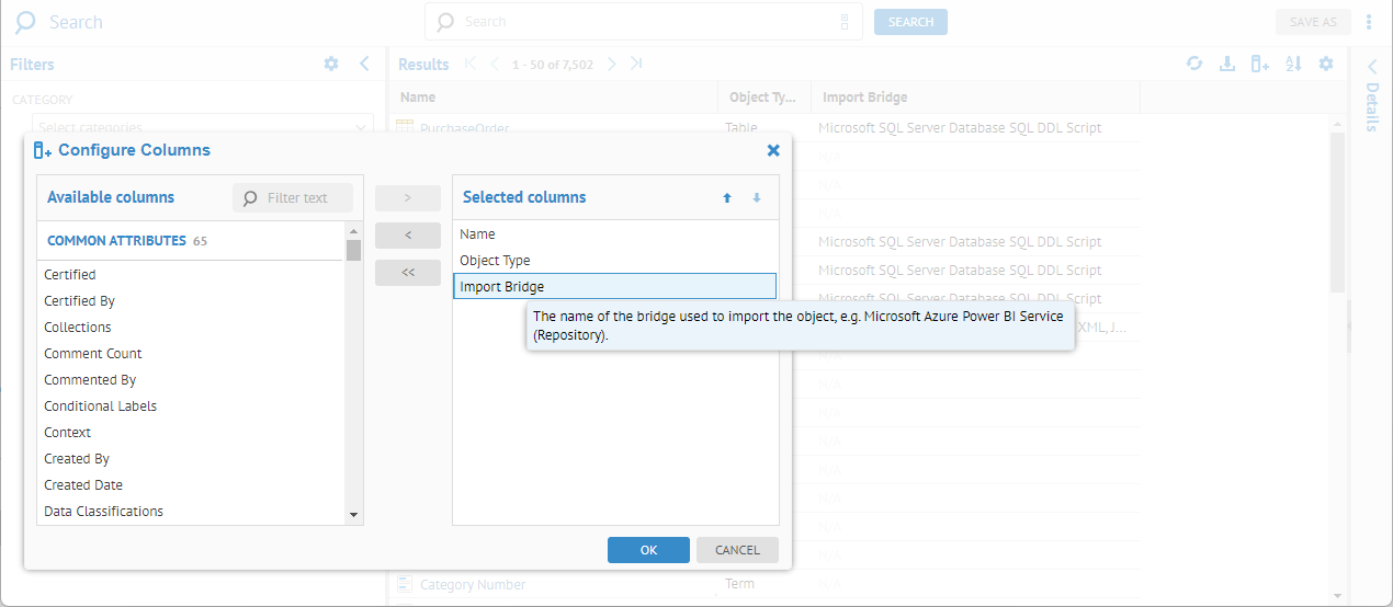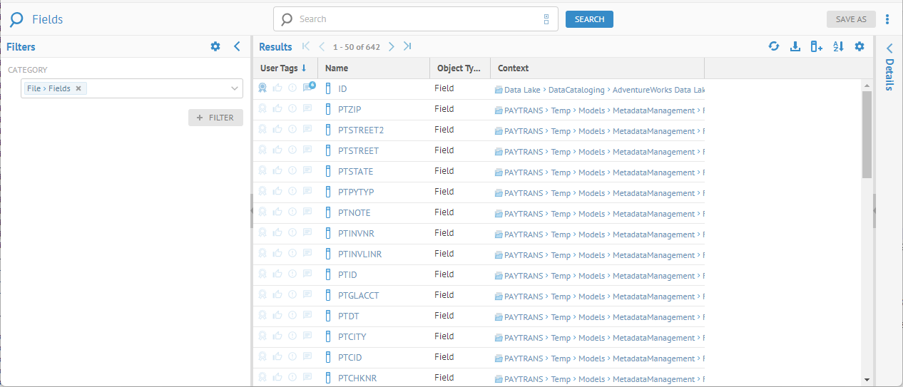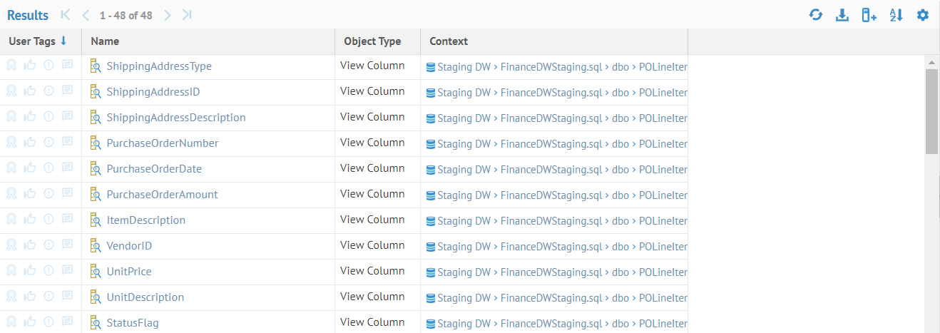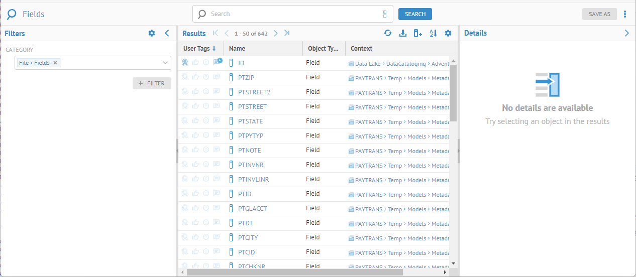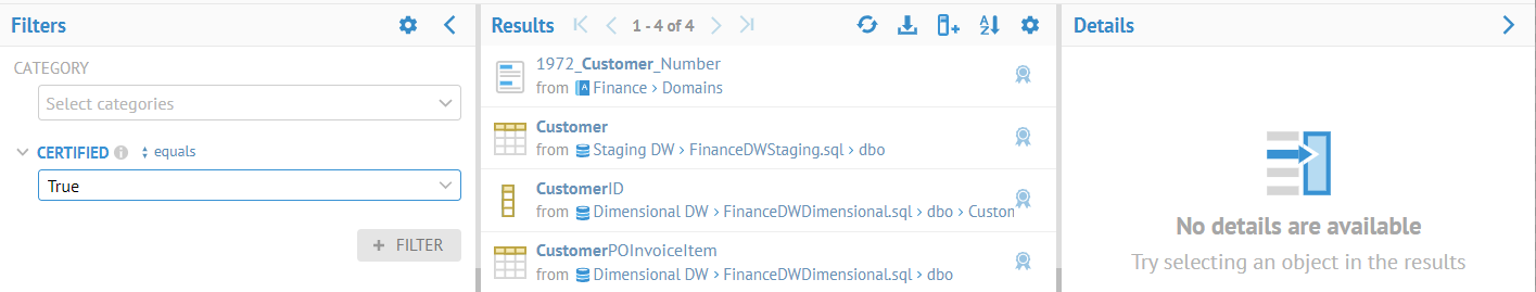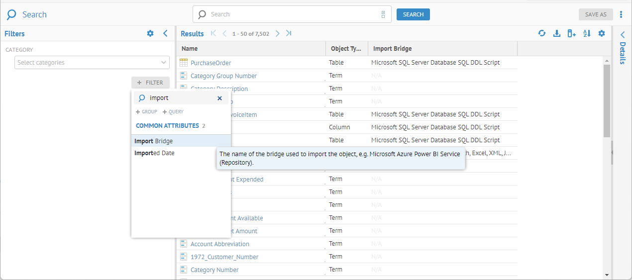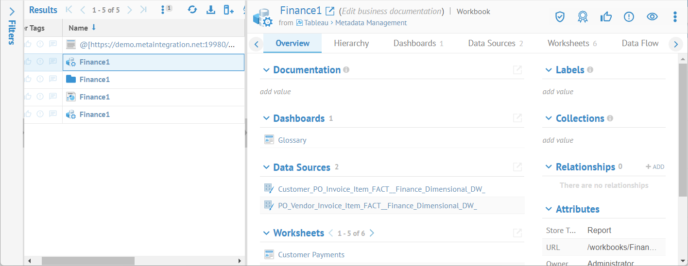 The worksheet capabilities offer you the ability to select multiple object types (e.g. database / tables + Flat files) and subset by model (My Data lake + Sales DW database) before drilling down with a large number of filters: