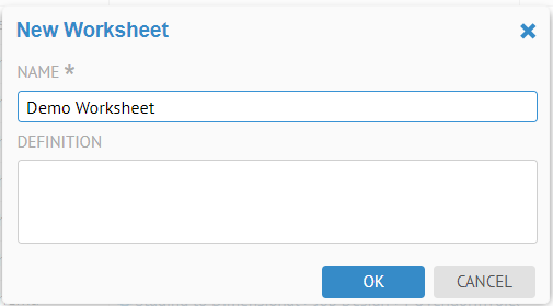 Sign in as Administrator and go to WORKSHEETS > New Worksheet and enter a NAME and DEFINITION.