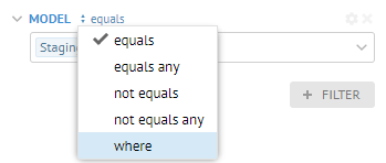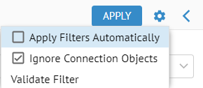 Filtering is available on a number of properties of an object, includingg most all properties which may be included as columns in a worksheet. Filters of particular note are detailed individually.