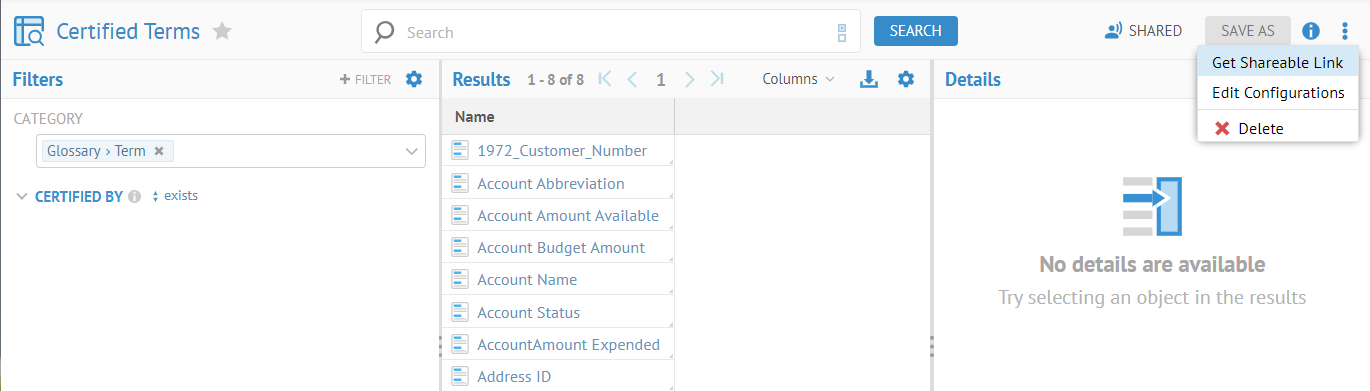 Click Download as CSV to produce a CSV file of the results reflecting the filters, columns, sort order and other configuration details.