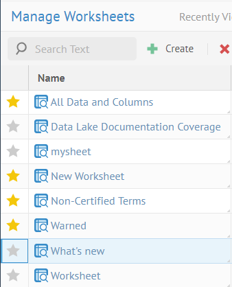 To build a worksheet, you generally begin by searching. You may also go straight to the create option on the manage worksheets page. There are several options available for creating as worksheet.