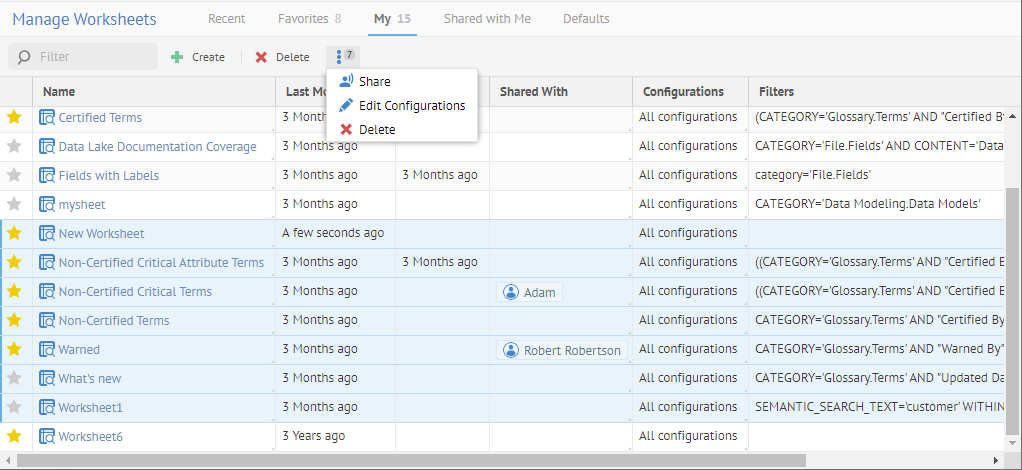 Worksheet. The owner (creator) of a worksheet may share that worksheet with and