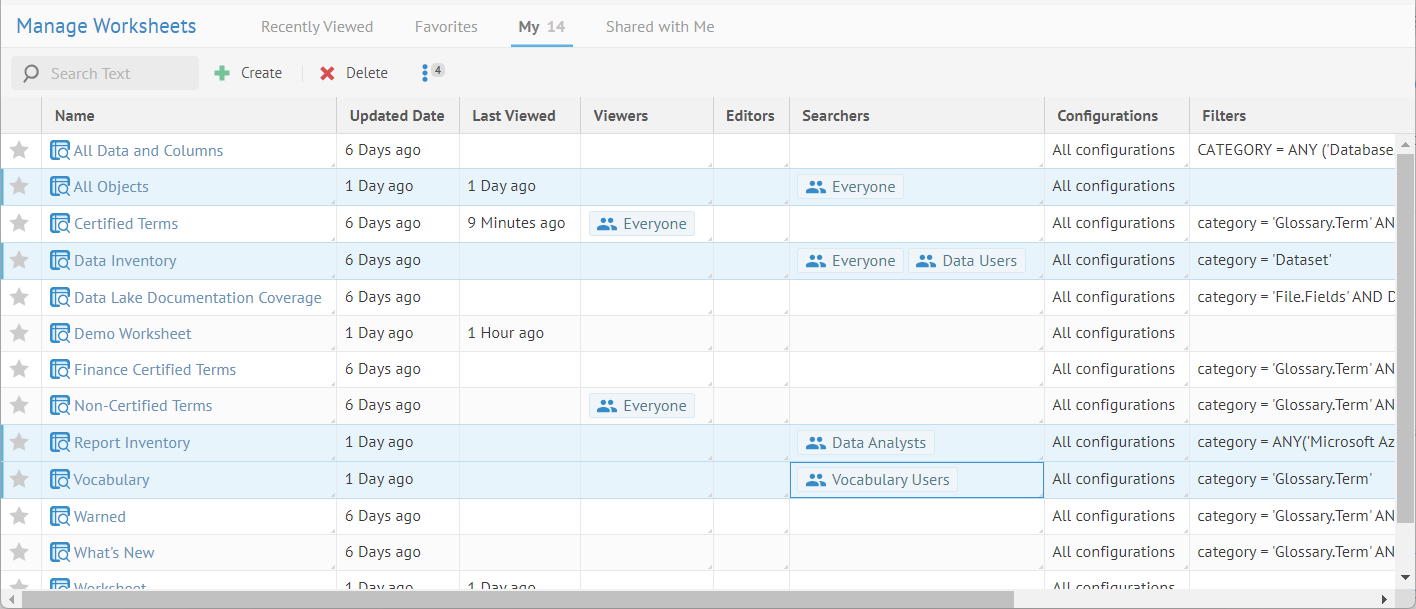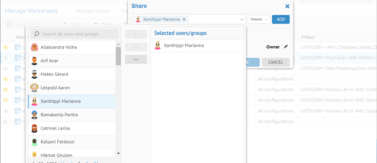 users and/or groups. Steps Go to WORKSHEETS > Manage.